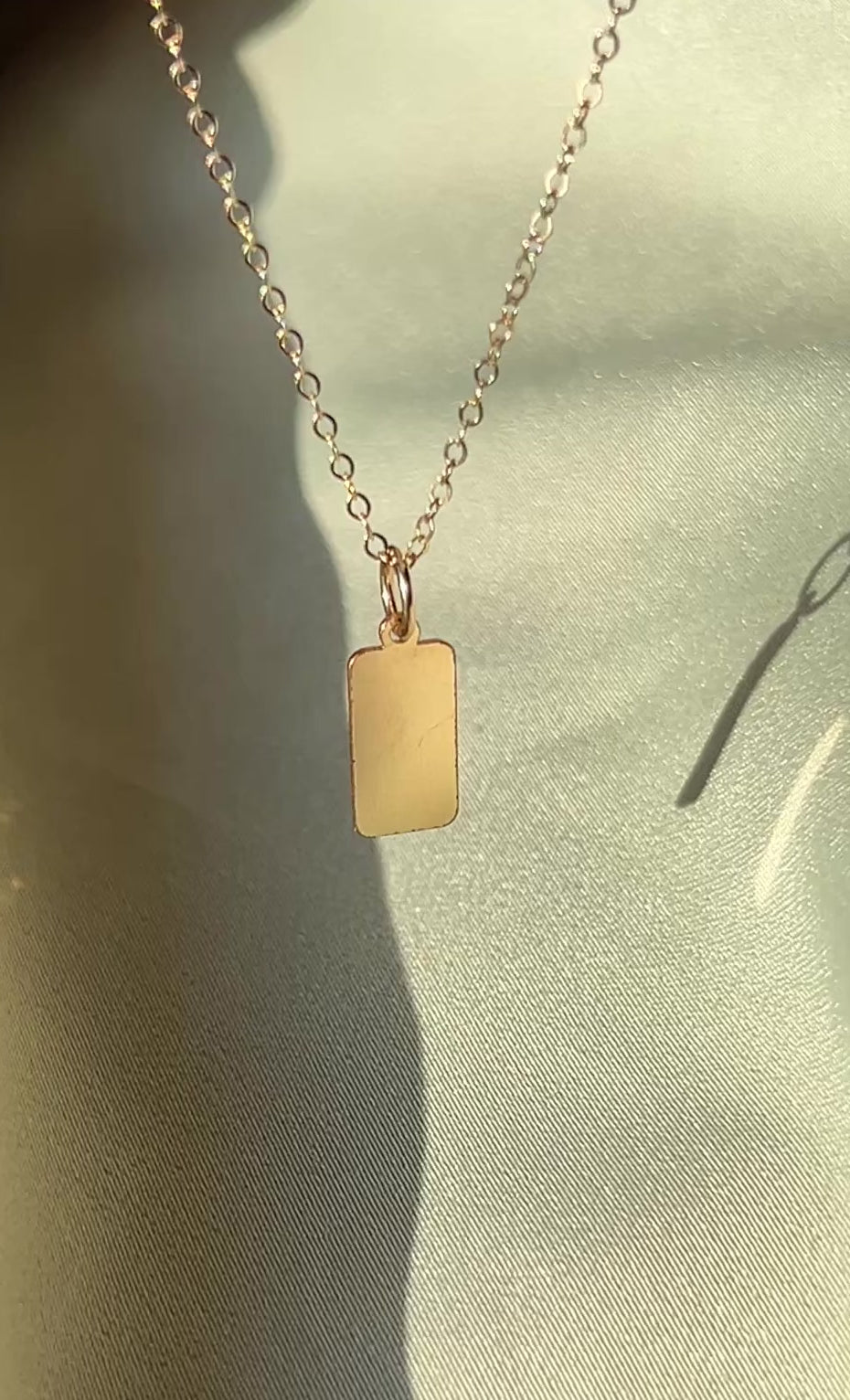 Un collier minimaliste et raffiné orné d'un pendentif rectangulaire personnalisable en Or Rempli 14K. Élégant et intemporel, ce bijou délicat est parfait pour exprimer votre style avec subtilité.